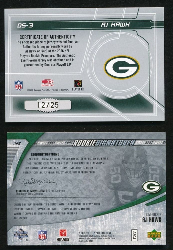 Lot Of 2 Aj Hawk Football Inserts Cards With 2006 Leaf Rookies And Stars Dress For Success Jerseys